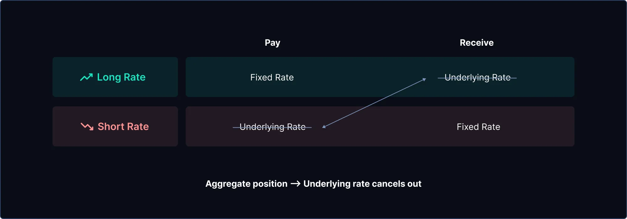 This is because the underlying APR payment / receivables from opposite positions cancels each other out, leaving the position with an aggregate fixed APR payment / receivables. Since a fixed APR payment / receivables to maturity is deterministic, Boros can immediately settle the position into your collateral.
